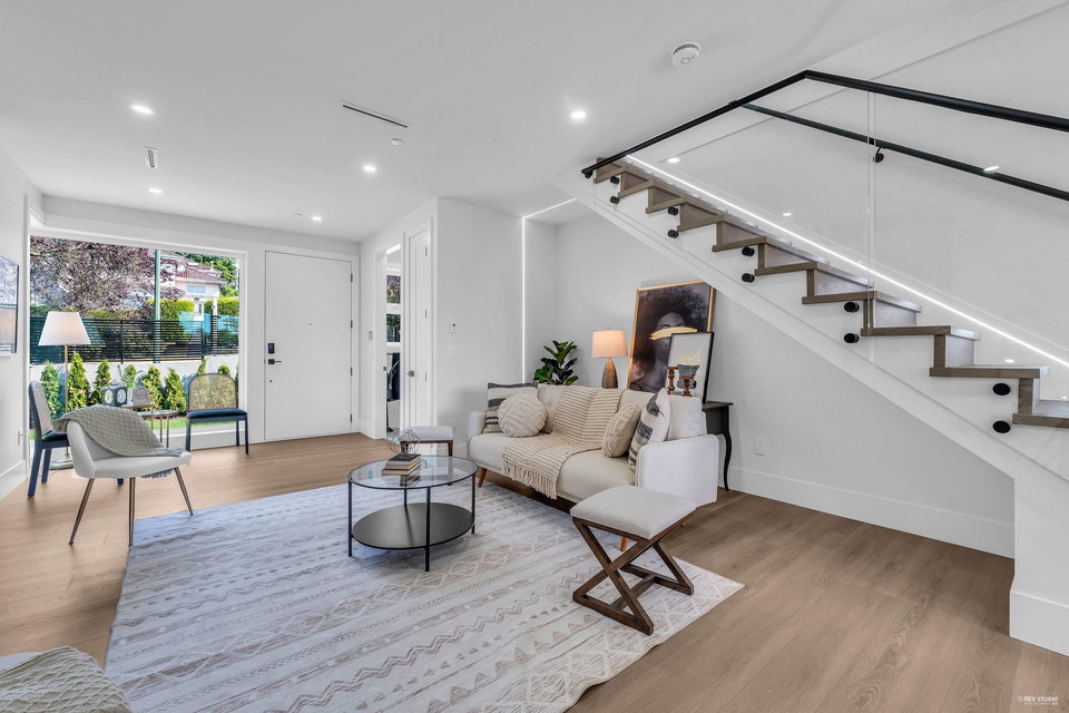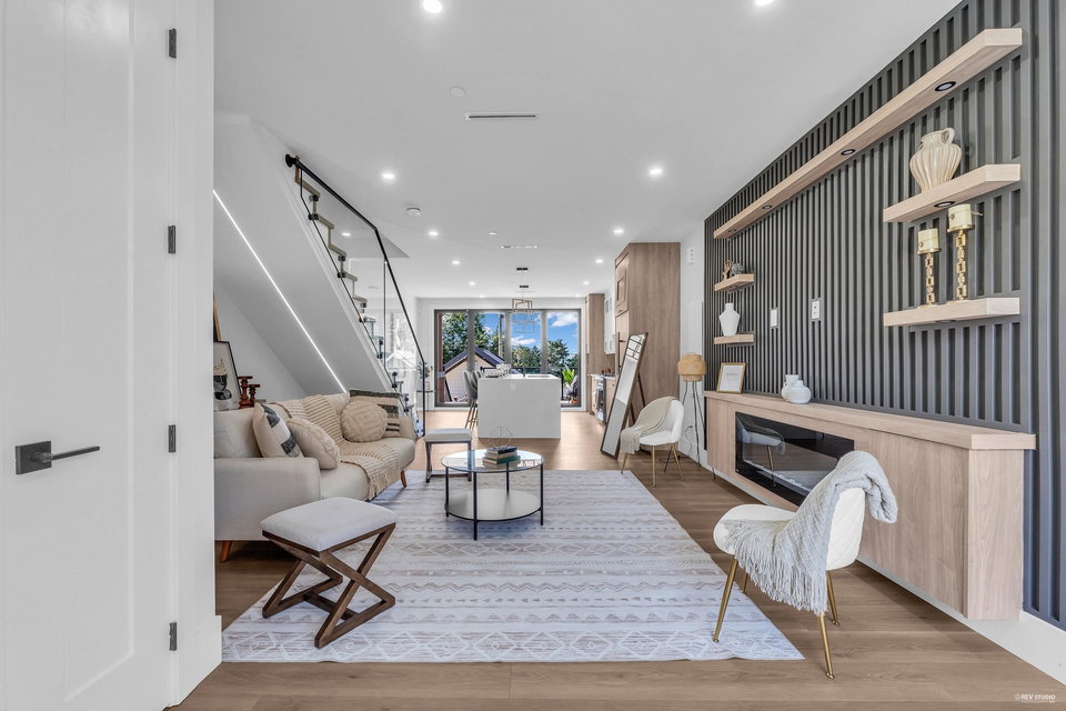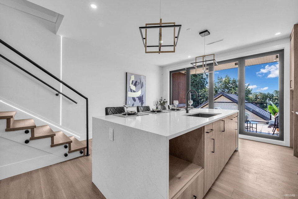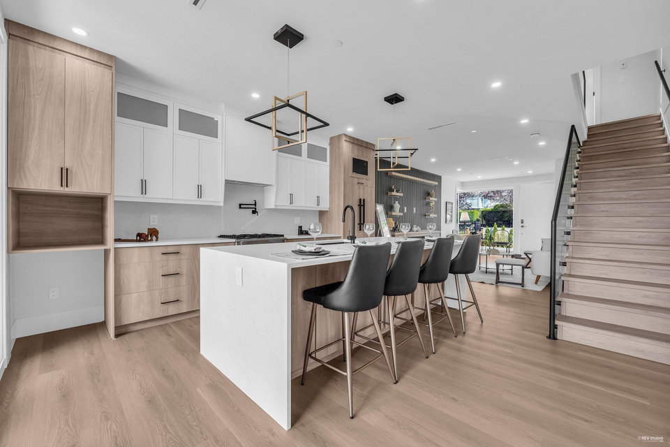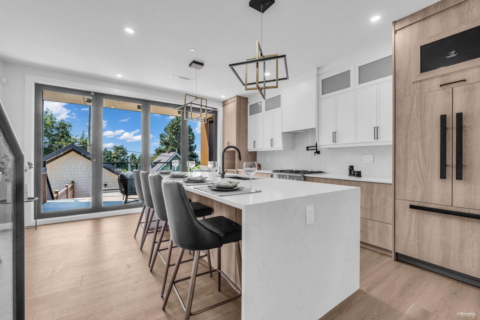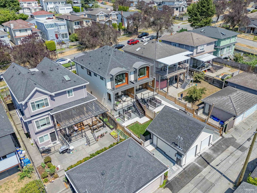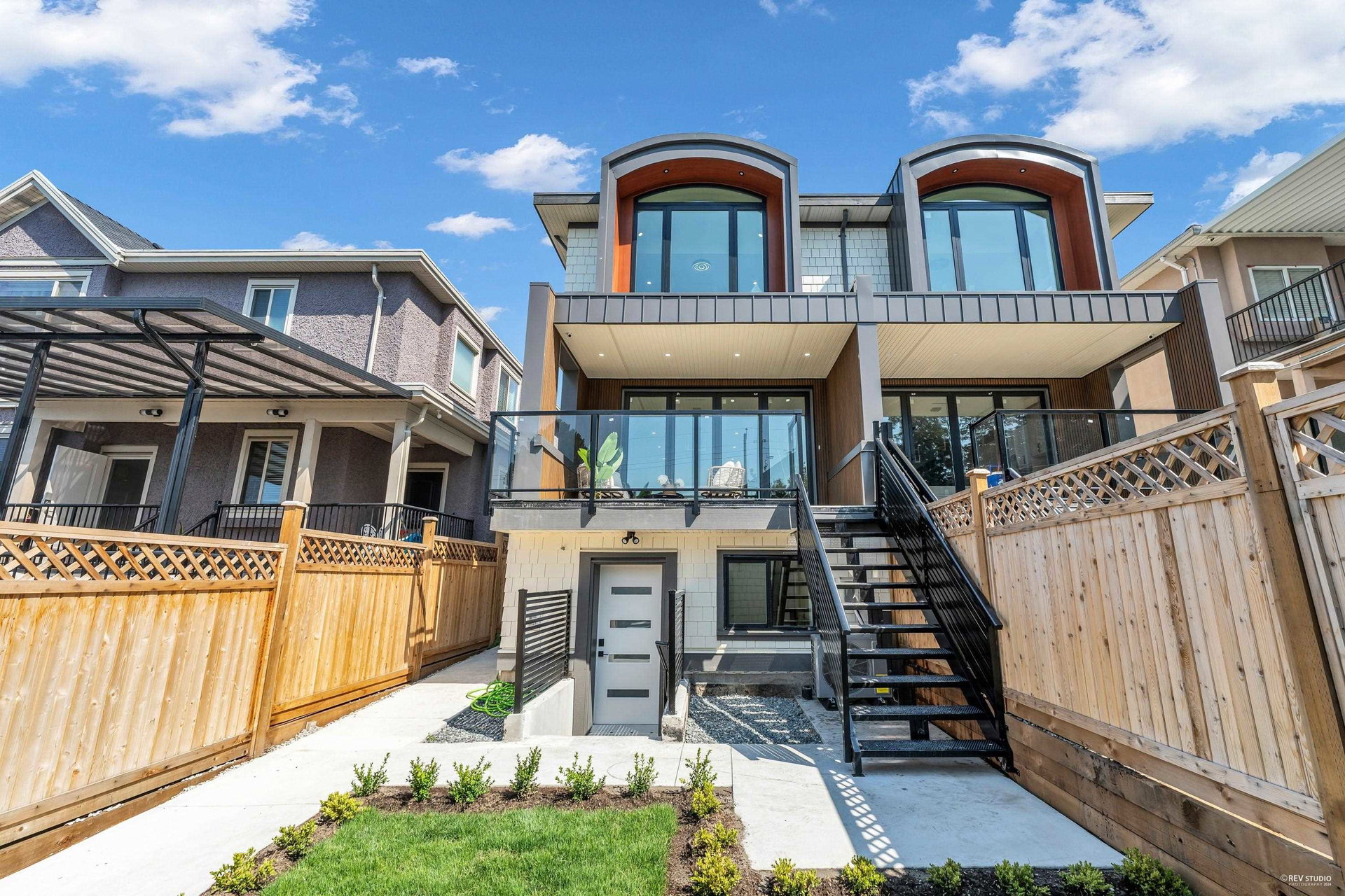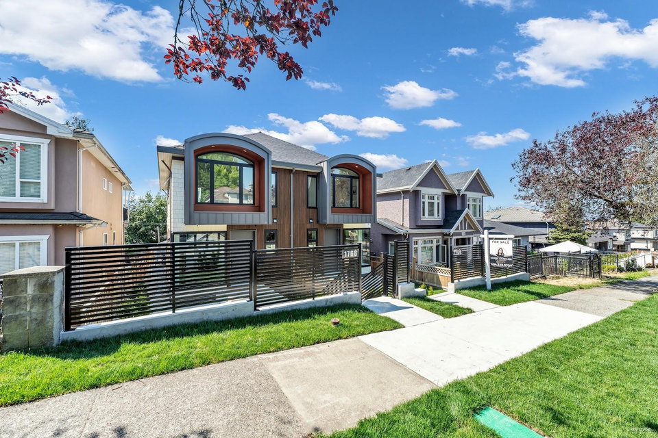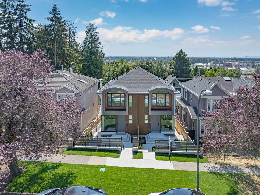 Stunning new Side-by-Side duplex. Boasting modern design and high end finishing. Both residences feature 4 bedrooms and 3.5 bathrooms with self-contained walkout 1 bedroom legal suite as mortgage helper. Luxury finishes include wood accent panel walls, waterfall kitchen island, Fisher Paykel appliances, glass railings, arch windows, bi-folding doors that lead to a private patio space. This includes a fenced backyard to enjoy sunsets & outdoor living with a beautiful view. Each home comes with a single car garage and additional open space for parking. Walking distance to Transit, Shopping and Schools. Ideal for comfortable and convenient living in the centre of the city. Short Drive to Richmond and YVR Airport. Open house Sunday Sep. 15th 2-4 pm.